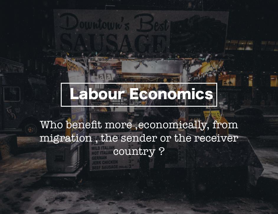 Logically, people tend to assume, specially locals, that immigrants bring damage to their local economy. This is true, but to a certain extent. To a rather far extent many citizens often ignore the benefits that immigrants bring to the economy. I will try to underline some of the damage and economic benefits of migration on the sender and the receiver country , but first we ought to explain the types of migrations a better understanding of damage and benefits.