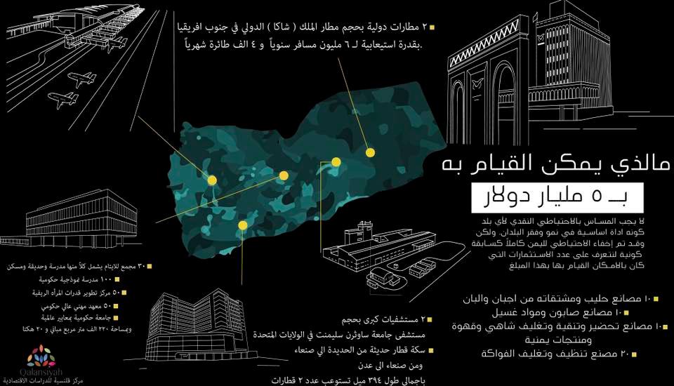 ٢٨٣ مشروع استثماري -من بينها مطار دولي -كانت ستستطيع الـ ٥ مليار دولار تحقيقة لليمن كإستثمارات كانت بدورها ستقوم